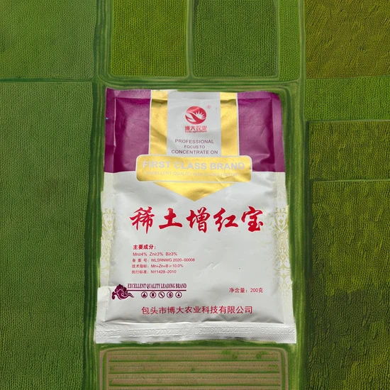 Key Benefits: Promotes cell division and metabolism Increases anthocyanin and lubin content Accelerates fruit coloring and ripening Enhances photosynthetic capacity and antioxidant ability Stimulates reproductive development Reduces cracked fruit and increases sweetness Improves yield and early maturity Enhances disease resistance How to Use: Simply spray Rare Earth Zenghongbao on the leaf surface with 100-150 kg of water per bag. Apply once every 7-10 days during fruit development and color turning stages. For best results, spray continuously 3-5 times to achieve optimal leaf thickening, fruit coloring, sweetness, yield, and early ripening.