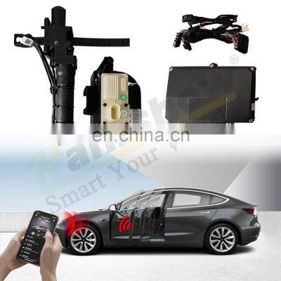 Product DescriptionModel Y Automatic Door Right Left Auto Presenting Door For Tesla Model 3 Y Electric Soft Close Car DoorsProduct nameModel 3 Y Intelligent Automatic DoorFunctions1.Mobile App control to open the door2. Use the key card to open and close the door3.Step on the brake to close the door4.Press the door handle to open and close the door5.Press the door panel button to open and close the door6.Use the remote key to open the door7.Gently push the door to close the door8.Press the added button to open and close the door9.The opening angle can be adjustedAdjustment mode long press the key button for 3S, and the door opening angle will be set successfully after hearing a prompt tone.Country Of OriginGuangdong,ChinaCar Maketesla model 3 model YBrand NameHansshowDoorFront Left Door/ Front Right DoorMaterial Plastic +MetalRecommend ProductsPower FrunkTesla Carplay ScreenAuto Presenting DoorPilot Light Yoke Steering WheelAuto Door Handle Active Sound ExhaustCar Audio UpgradeScreen Swiveling MountRear Bumper LightIlluminated Door SillEagle Eye Tail LightHonest Cooperation, Mutual Benefit And Win-win!Company ProfileHansshow, established in 2018, is an innovative enterprise focus on research, production, sale and service of Electric tailgate, yoke steering wheel,Auto Soft door close, Real dry carbon fiber parts, Auto led taillight, Electric sliding door, Active sound system, Carplay display screen and etc.Our factory area up to 5000 square meters, stuff more than 60 people and we also have obtained C E and ROSH certificates. the company own considerable development and get proud sales results, clients come from 130 countries and nations.Selling well in all cities and provinces around China, our products are also exported to clients in such countries and regions as USA, Europe, south America East-middle, Asia and other regions.Packing & DeliveryDelivery Way:Express shipping: DHL/Fedex/UPS/TNT;Cargo shipping:Air Flight/Sea shipping;Delivery Time:Delivery within 7 days after payment;Our Services:1.24 hours online service, please feel free to contact us.2.Support wholesale, OEM group purchasing,Factory direct sales with good prices.3.Over 500 installation points in 26 different countries. Send enquiry to us now. vide product installation video,Product installation engineer online technical guidance.