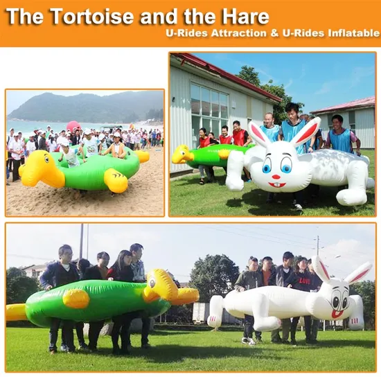 | Introduction: | Tortoise and hare inflatable game is for team race, Several people ( normally size is for 5 persons) stay in inflatable hare or tortoise, together running, The winners will be the team who first reach the terminus.The inflatable game now is very popular for school, team train, kindergarden etc.It suitable for adult or kids play. |