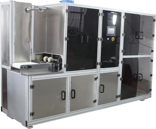 The equipment is controlled by computer program, sponge is pressed and trimmed by heating, the whole machine is operated automatically. Finished product has uniform specifications, welding firmly, strong pulling force and high efficiency.
