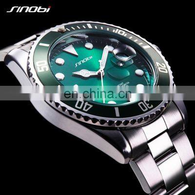 Product Description Product Name SINOBI Business Watch Man Stainless Steel Watche Model No.S9721GBrand SINOBI/ Accept make your logo StyleBusiness Watch for Man Movement Japan Quartz Movt. PC32Battery Life 18~24 Months Case Material Alloy Case Diameter/Thickness43.0/9.0MMBand Material Stainless Steel Band Band Width22.0MMGlass Material Mineral Crystal Glass Waterproof30 Meters / 3ATM FQA:1. What's your best price for this watch?A: We will quote you best price according to your quantity, so when you making an inquiry, please let us know the quantity you want.2. What's your MOQ? Can I mix styles and colors?A: For watch, MOQ is 500pcs/model for OEM & ODM, 300 pc/model of our brand SINOBI. We can mix colors for you, 300pcs/color. Usually we don't accept mix styles. But for the first order, and we see your sincerity to cooperate, we will try to accept 300pcs/style,but the unit price will be higher than the unit price of 500pcs.3. What's the delivery time?A:Delivery time is 25-35 days after confirmed all details and receipt of deposit.4. Can we print our own logo?A: Yes, we can print logo free for you, we can print your logo and design on the band, dial, buckle, back, case and other place, usually the color of the logo is one color.5.What about the warranty?A: We are very confident in our products, and we pack them very well, so usually you will receive your goods in good condition. But to avoid any subsequent trouble regarding quality issue, we suggest that you check the watches once you receive them, and let us know the details if there is any damaged ones, so that we can deal with it accordingly.6.Do you offer Drop shipping (Blind shipping )?Yes , we offer Drop shipping/Blind shipping,we haven enough experience in drop shipping ,every day we have many watches to send out many countries for Drop shipping.7. Do you do custom watch boxes?Yes, we do custom watch boxes. We can follow your requirement to make the boxes ,or you can select our boxes with your logo, we have many different type watch boxes for you selecting.8. What movement do you usually use in your watches?We usually use Japanese movement ,Swiss movement, and Chinese movement, for example Seiko,Citizen,Miyota,Ronda ,Kingstar we use most.9. What kind of materials do you usually use in your watches’ case?We usually use stainless steel and alloy for case, if you have any special requirement, we can according to your requirement for the case.10.What kind of band do you usually use in your watches ? We usually use genuine leather band , stainless steel band,nylon band, mesh band,PU leather band, silicone band ,and so on.11.What is your packaging?