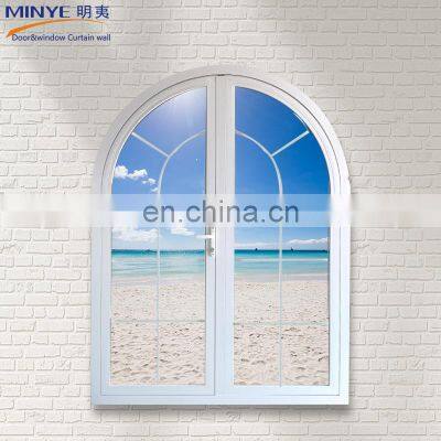 ItemChina Senior Supplier European Style Aluminum Arched Top Round Design Window Aluminum Swing WindowsProfile1.6063-T5/T6 normal aluminum,thermal break aluminum2.pvc/upvc/VINYL(China top brand CONCH/German Brand REHAU/Korea brand LG)Glass1.Double tempered glazing:5mm+12A(Air)+5mm; 5mm+12A+5mm tinted; 5mm+12A+5mm Low-E; 5mm+27A+5mm 2.Single tempered glazing: 3/4/5/6/8/10/12/15/19/21mm3.Laminated glazing: 5mm+0.76+5mm, 5mm+0.38+5mmHardware1.German brand: Roto, Siegenia, Geze2.Chinese brand: Kinlong,HopoMesh1.Stainless steel security mesh2.Aluminium security mesh3.Fiberglass flyscreen4.Retractable flyscreenSurface treatment1.Powder coating2.Anodized3.Electrophoresis4.Wood grain5.Fluorine carbon coatingParametersDouble glass sliding windowsSounds insulation: RW ≥ 30 dBWind pressure resistance: 4500 paAir permeation resistance: 70/150Water resistance: 450mmN6 CLASS based on AS2047 STANDARDWarrantyTen years Q: Are you a Trading Company or a Factory? MINYE is 100% real factory and has been verified by SGS Group.Here is a VCR for your reference: https://shanghai-my.en.china.cn/company_profile/video_introdution.htmlQ: How about your production time? About have 25-30 working days.It depends on the windows&doors types and profile (like color requires).Q: What about your MOQ? For window and door, the minimum order quantity is 30 Square meters.Q: Do you accept customized design and size? Yes, sure, windows and doors are highly customized goods. So the size and design are up to you.Q: What’s your payment term?T/T, L/C, Trade assurance and PayPal are available.Q: What is your color available? MINYE Standard Colors have Black, White, Dark grey, Nature, and Coffee. Other RAL Colors are also available but it will spend more time and money. Q: What kinds of hardware mostly? China brand: HOPO, KIN LONG, PAGANI, YEAR, CHUANG Germany brand: ROTO, SIEGENIA Italy brand: SAVIO, GIESSEQ: What is profile available in your factory? Aluminum (Non-Thermal Break and Thermal Break), PVC(UPVC&VINYL), Aluminum Cladding wood.Q: Do you provide Sample? Sure, it is available. But we need charge for sample cost and freight fee.