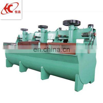 When the flotation machine works, the motor drives the impeller to revolve, so the centrifugal effect and negative pressure are produced. On one hand, ample air is absorbed and mixed with mineral slurry, on the other hand, the mixed mineral slurry is mingled with additive, meanwhile, the foams are thinning, the mineral is bounded with foams, and floats up to the surface of mineral slurry and the mineralized foam is formed. The liquid surface can be adjusted with the height of adjustment flashboard, so that the useful foams are scraped with squeegee.